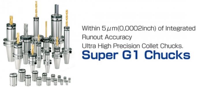Yukiwa tooling systems are characterized by the chucking method with the collet chucks, such as Super G1 Chucks guaranteed 5μm of integrated run out and New Drill Mill Chucks of best seller. By being used on the machining centers, tapping centers, NC lathes and special purpose machines, our tooling systems contribute to improve the cutting tool’s life time, to shorten the cycle time by improving the rapid feed rate and to reduce the costs at your factory.